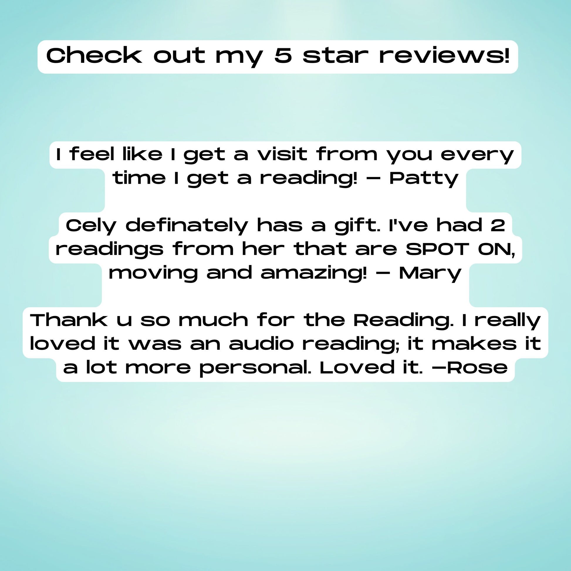 All readings will come with a detailed voice recording of your reading done by me. Please leave your EMAIL and your (optional) QUESTION you want answered in the purchase comments (or email me) so I know what to read for and where to send it. If no specified questions are provided you will receive a general reading.