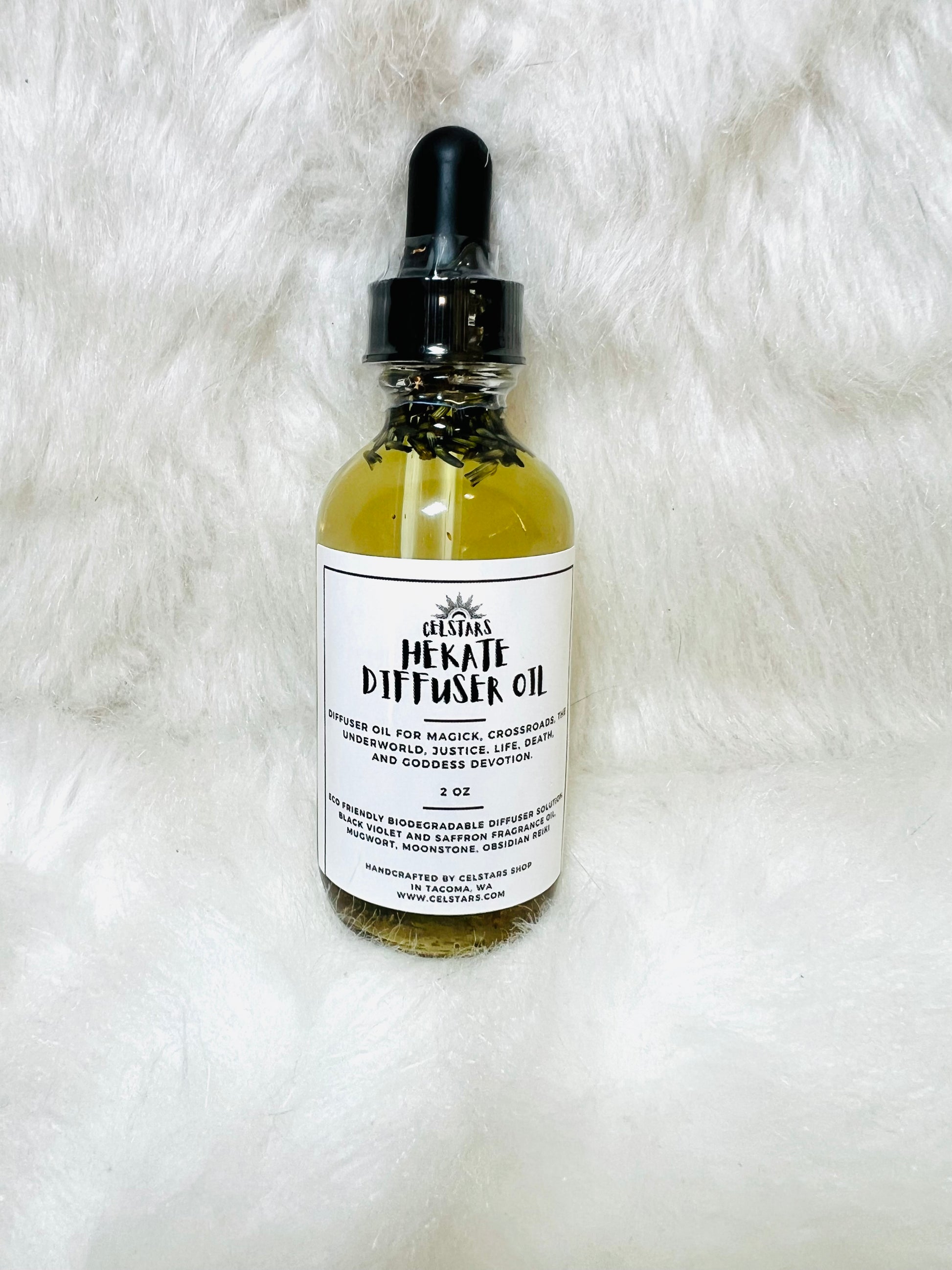 Hekate - Black violet & Saffron, for magick, crossroads, the underworld, justice, life, death, and goddess devotion. With mugwort, lavender, moonstone, obsidian, reiki.