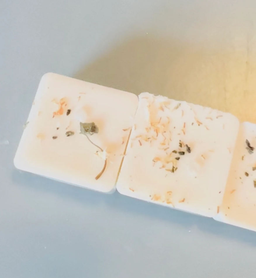 Each wax melt has a specific intention and is curated for that intention with herbs, a crystal chip, fragrance and reiki.