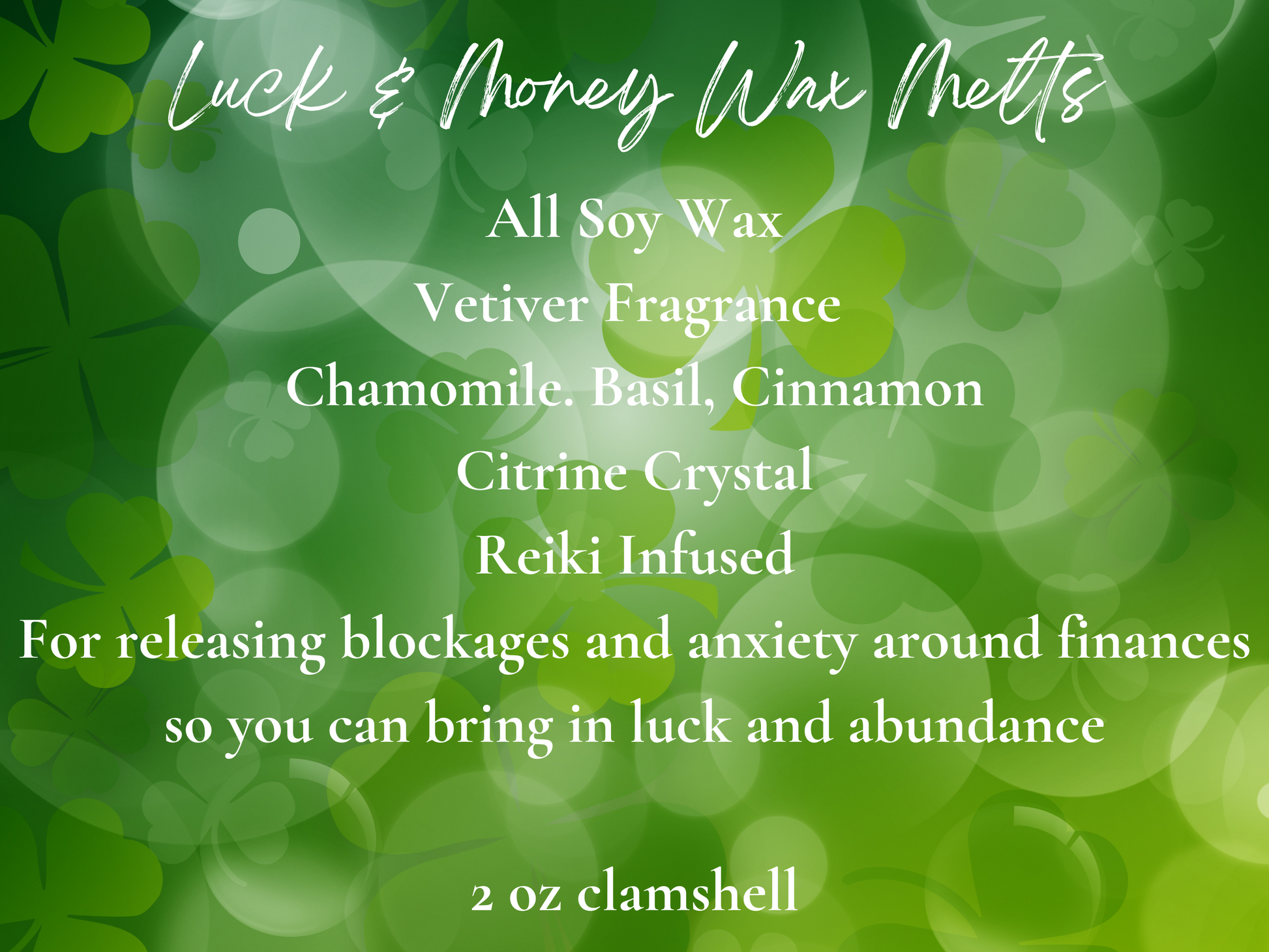 Luck and Money is the perfect wax melt for bringing in abundance, use it to get rid of money blocks or anxiety over financial issues. Get rid of the negativity so you can bring in the positive luck and money energy!