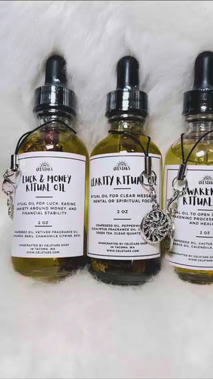 LUCK & MONEY RITUAL OIL - 2 oz glass dropper bottle. Use it to dress candles and in your beauty rituals. Great as a hair oil, perfume oil, spell oil, ritual oil, or skin oil.
