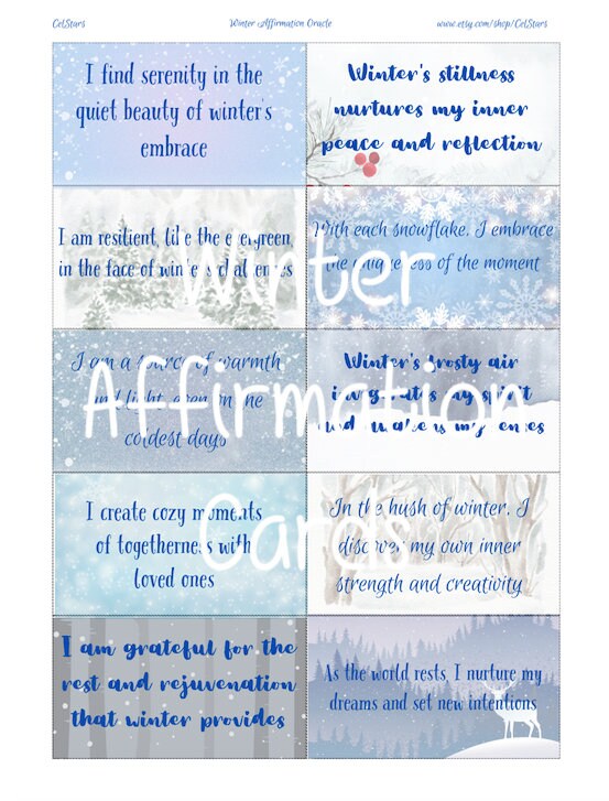 This is an instant download for a winter theme pocket oracle affirmation cards!