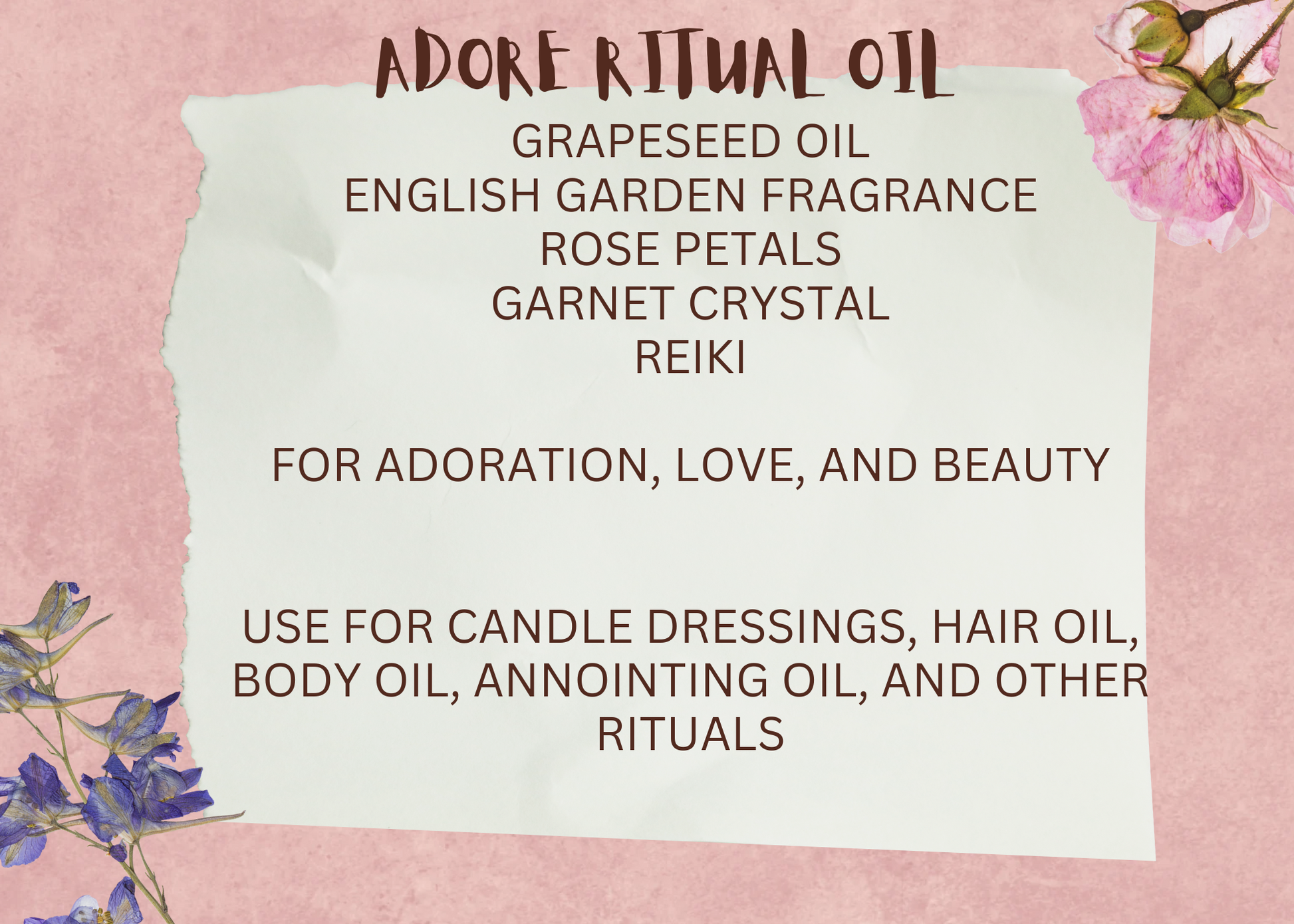 Adore - For love, english garden with rose petals and garnet