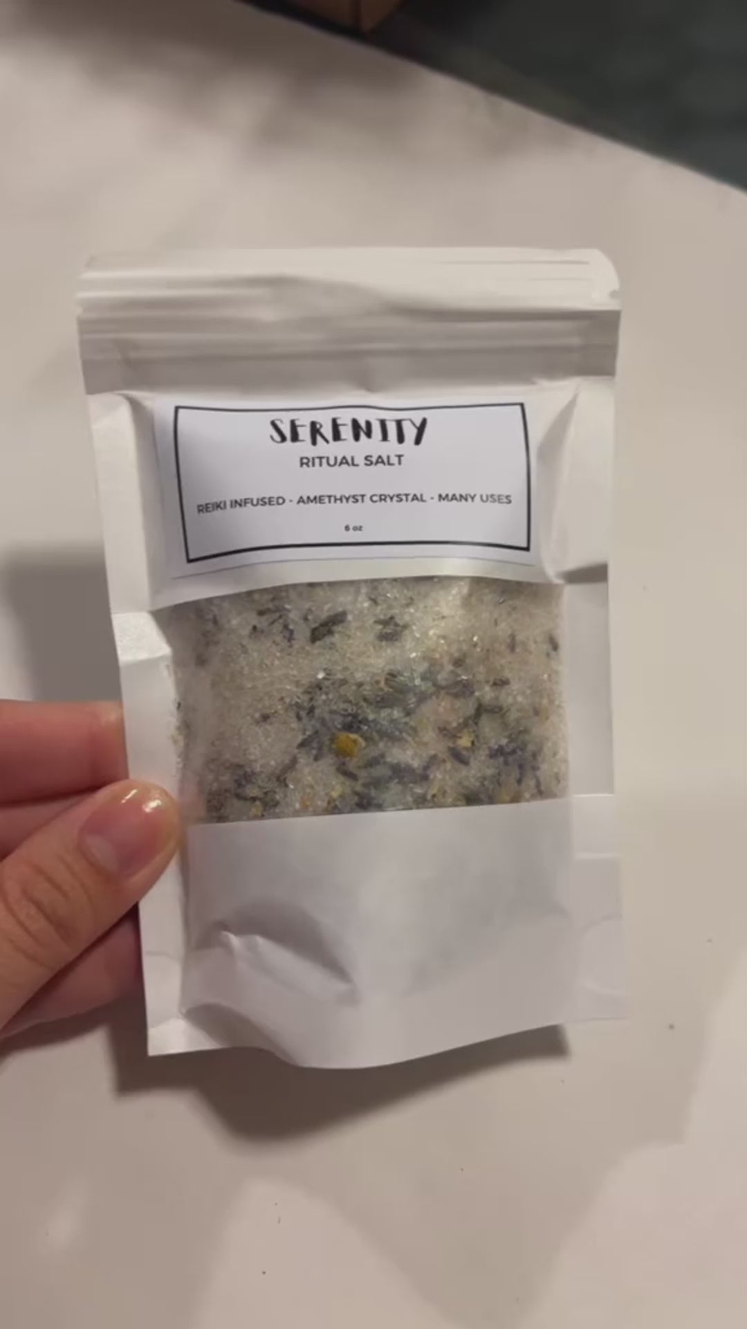 This ritual salt is great for putting yourself in a calming space. Its perfect for self care, relaxation, calming, and peace. Use it for ritual or bath.